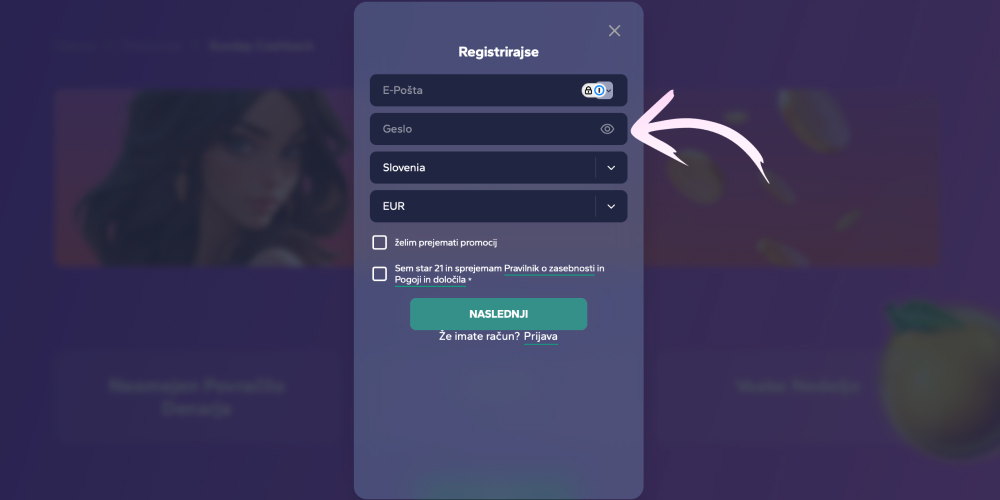 Označite, da ste starejši od 21 let in da se strinjate z notranjimi pravili igralnice;